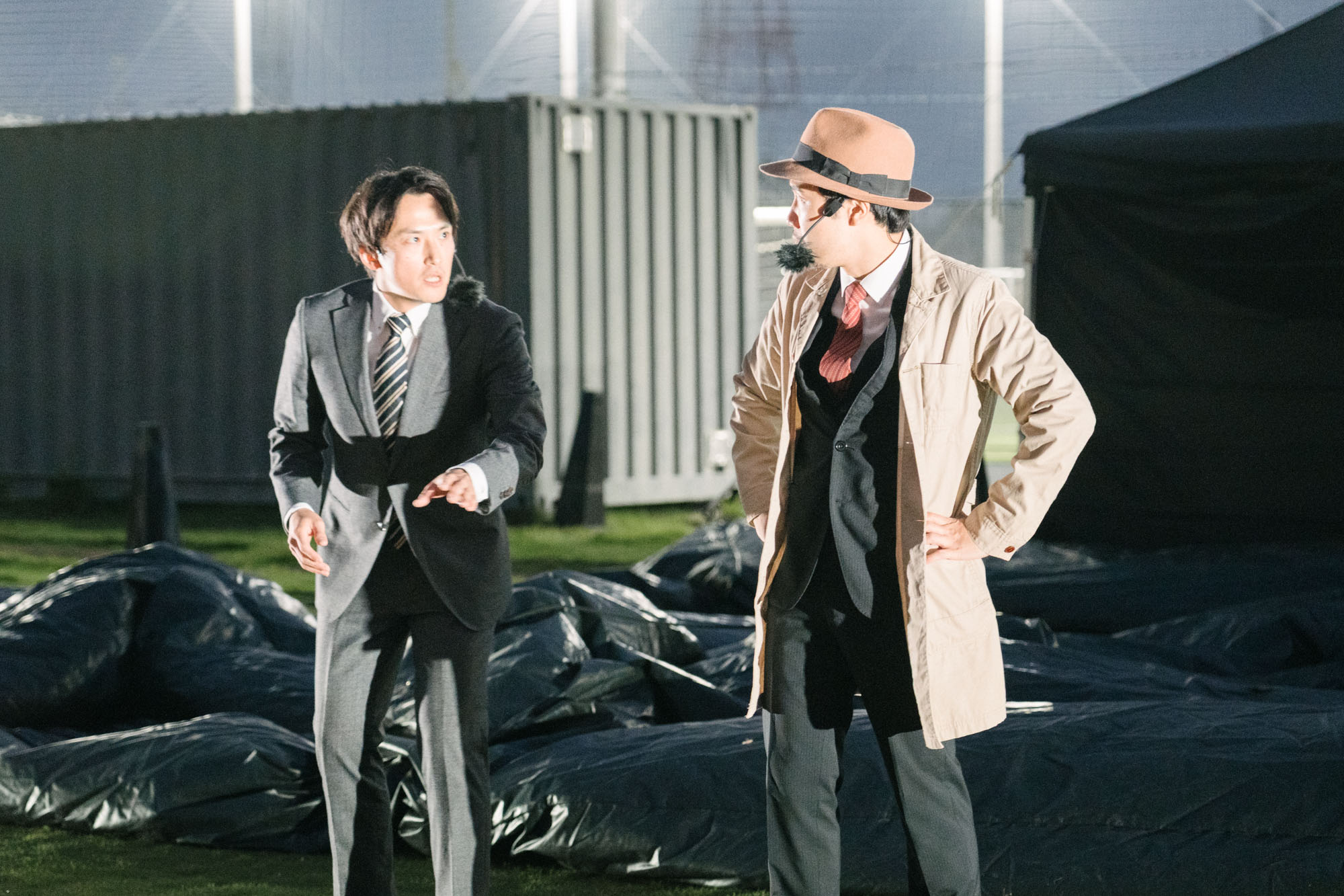 ザグリーンシアターの“支配人”(左)、“副支配人”(右)による寸劇も。出立ちひとつとってもこの後の上映作が描く空気そのままといった風