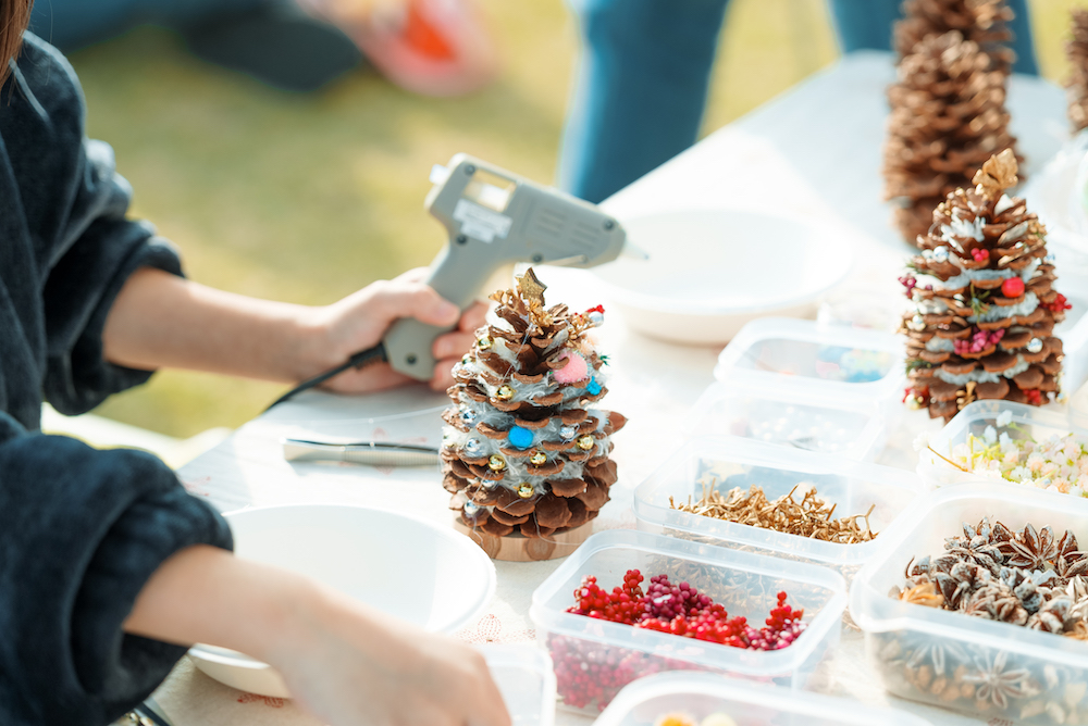 大きな松ぼっくりからつくるクリスマスツリー。こんな具合に“工作の秋”していくことも