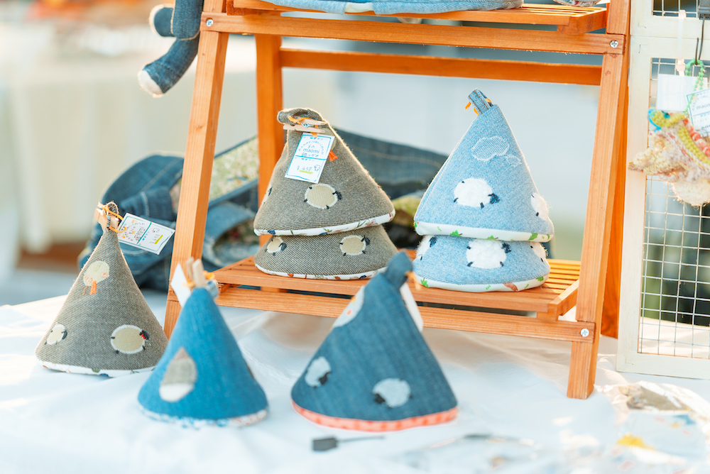 ハンドメイド雑貨やアクセサリー、季節を先取ったクリスマス関連等々が並ぶマーケットのほか、大きな一枚絵を大勢して描くペインティング、新手の縫い物の体験ワークショップ、また気軽なクイズ大会も。