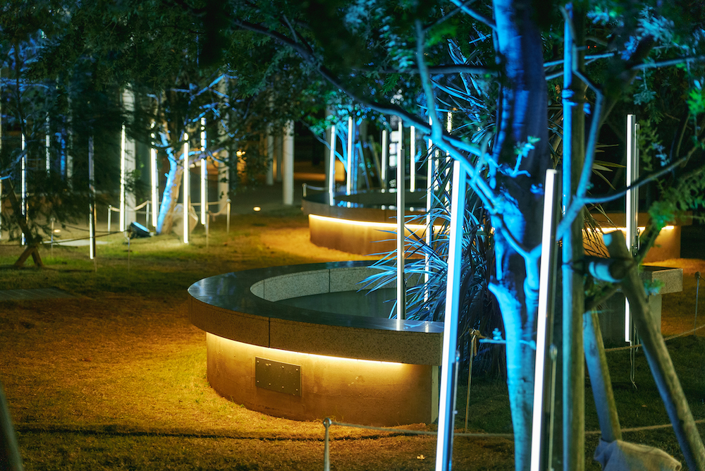 光と音で綴られる叙情的なモノローグの時間が、ガーデンエリアと施設正面(ファサード)の一帯でひと知れず、今夜もまた。