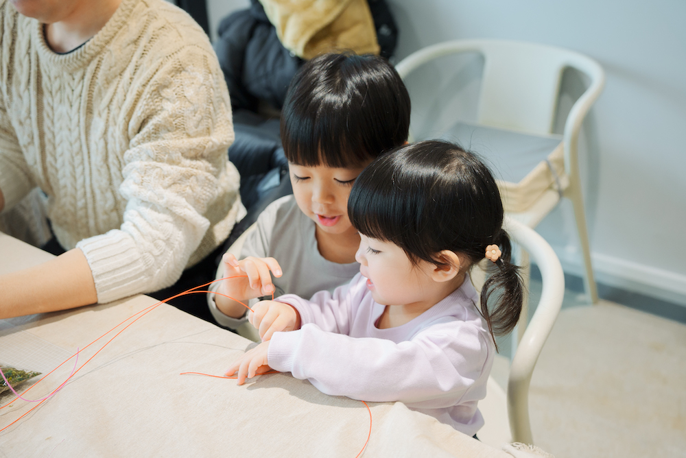 先端を通すのは手前から? 後ろから? 脳みそフル回転の挑戦を二回三回と続けます
